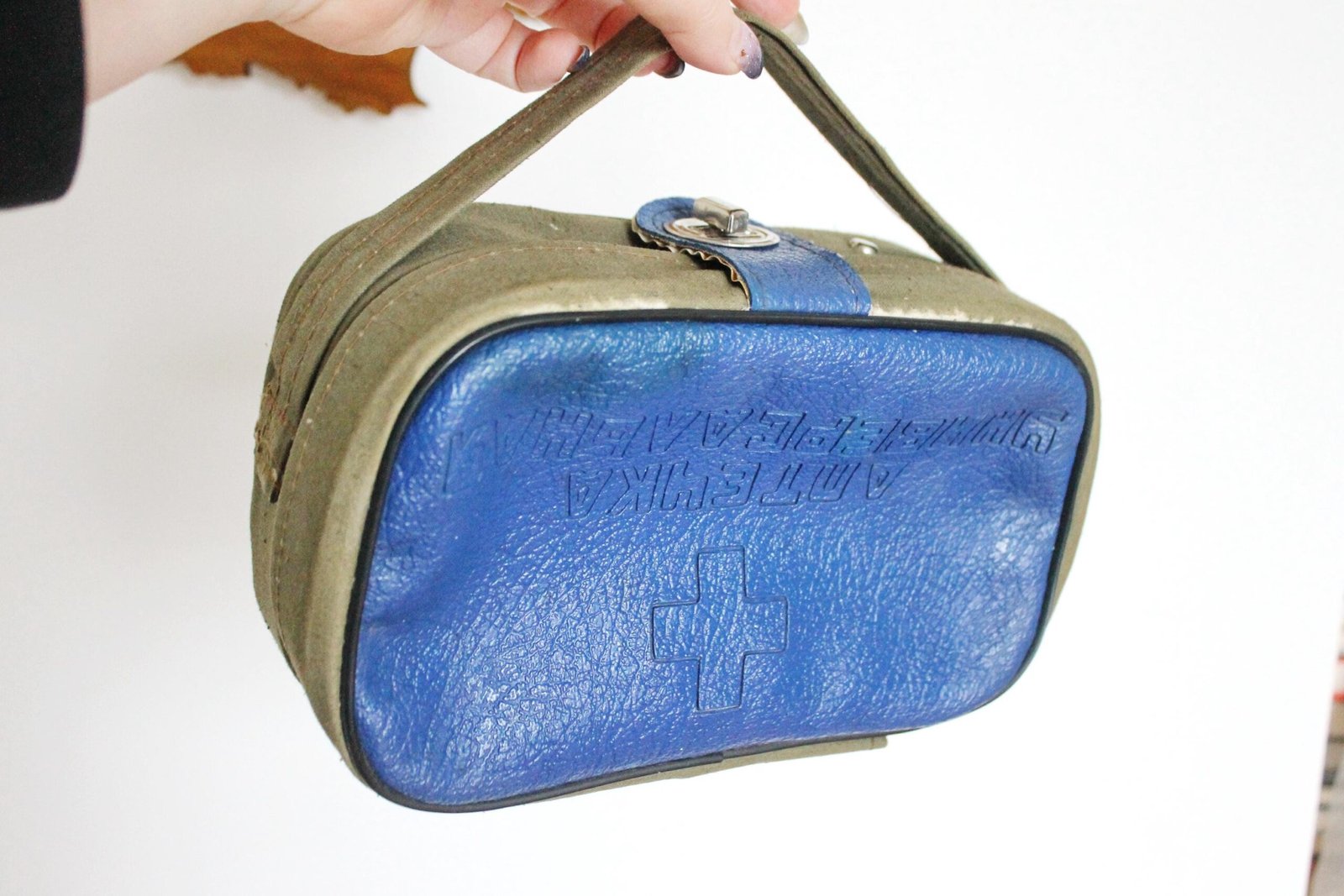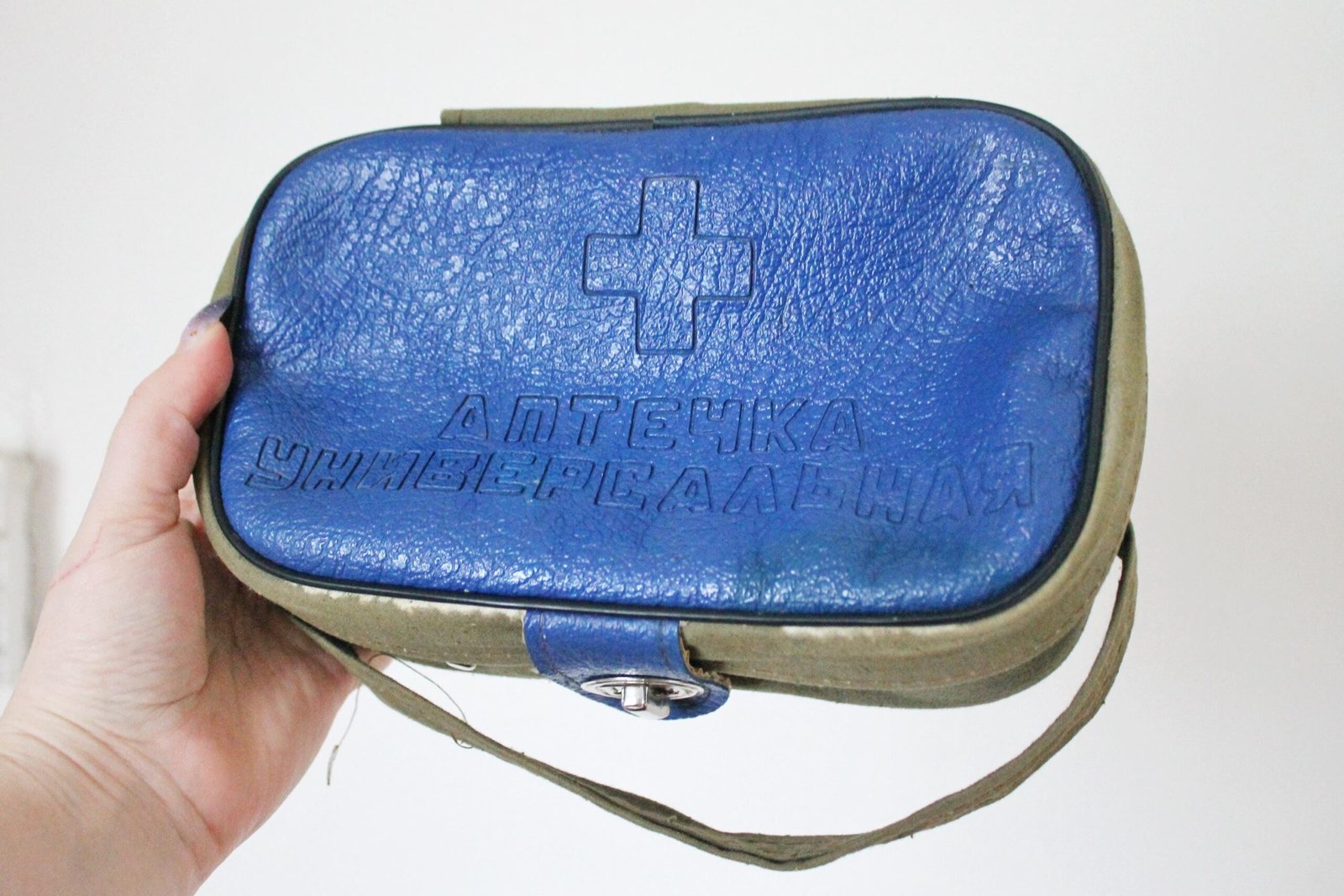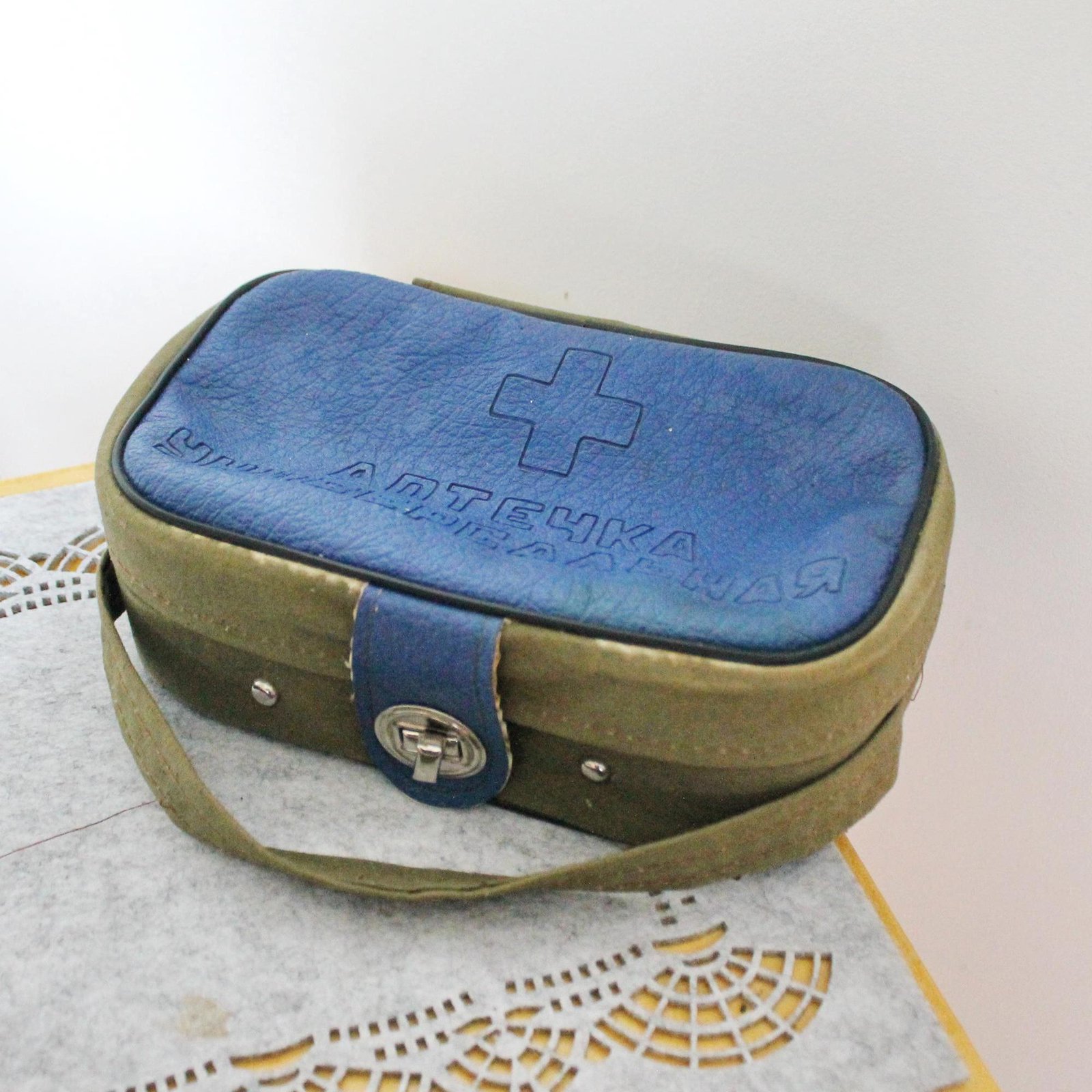 Vintage USSR medicine first aid kit 9.1 inches – Medical box – made of faux leather – First aid box – Soviet Medicine cabinet