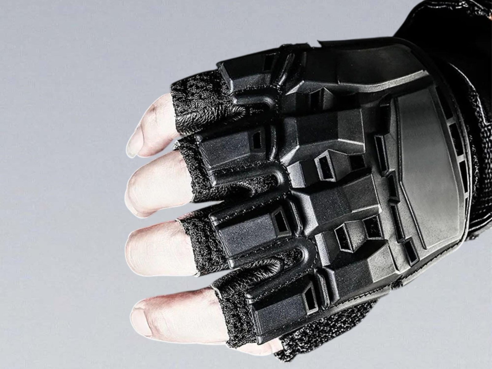 WARCORE FINGERLESS GLOVES – Tactical Cyberpunk Techwear Gloves with Knuckle Armor Streetwear Gloves for Motorcycle, Training, Outdoor Sports