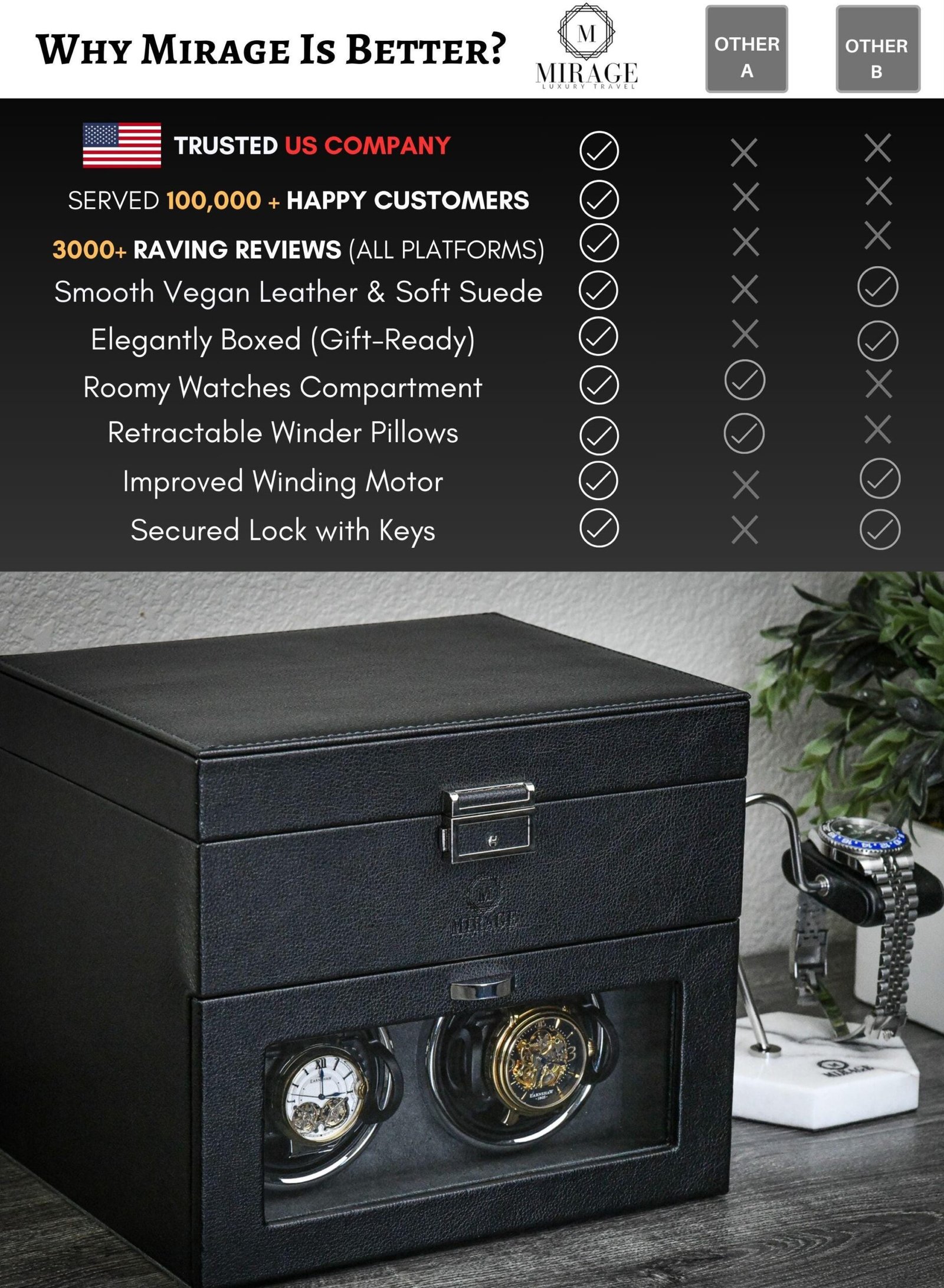 Watch Winder Box for Automatic Watches Best Watch Winder Box for Men Watch Winding Machine Mirage Black Luxury Watch Winder Case Gift Men