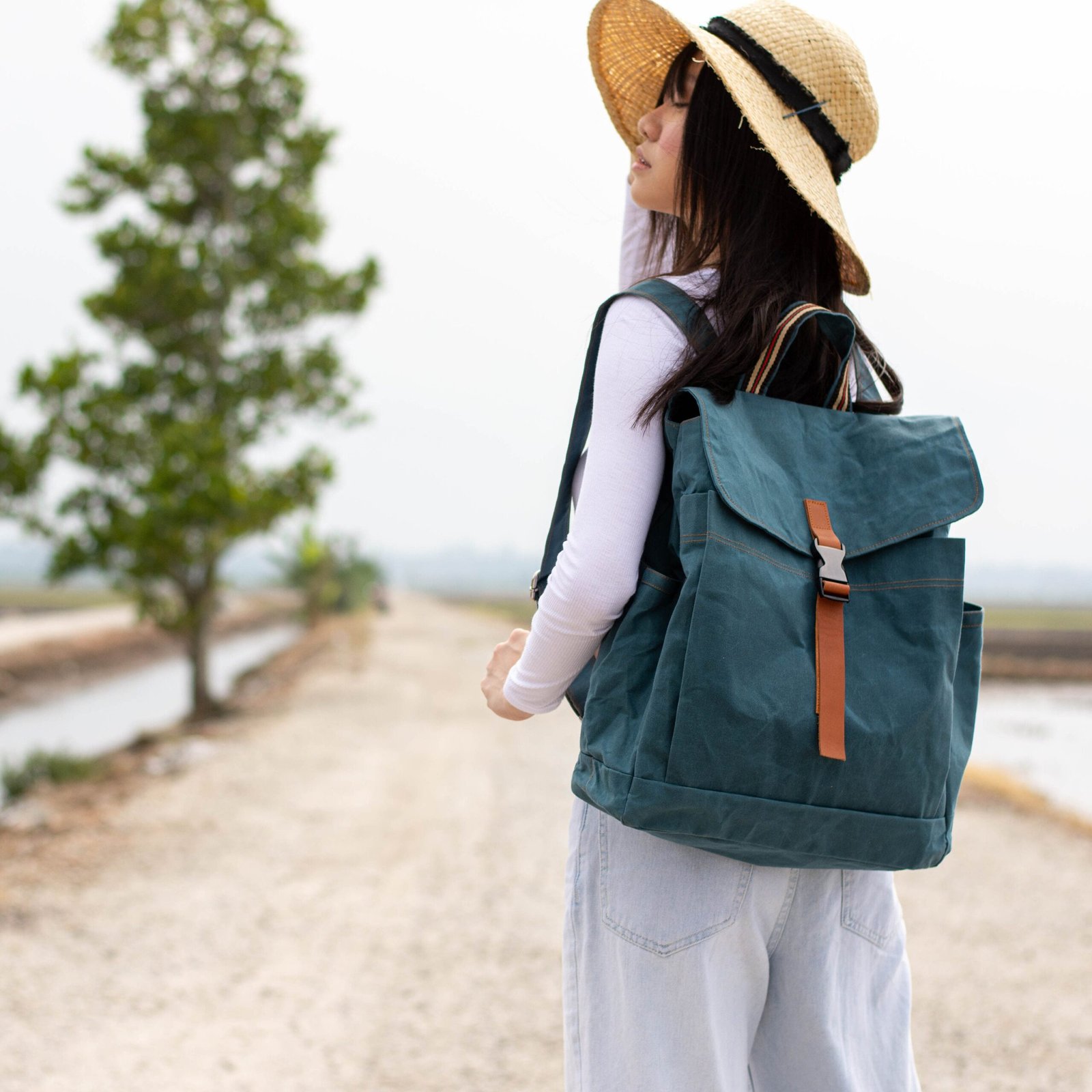 Waxed Canvas backpack for school, Diaper bag backpack , Teal blue travel backpack, Casual Unisex backpack for work – Backpack Marken | 108