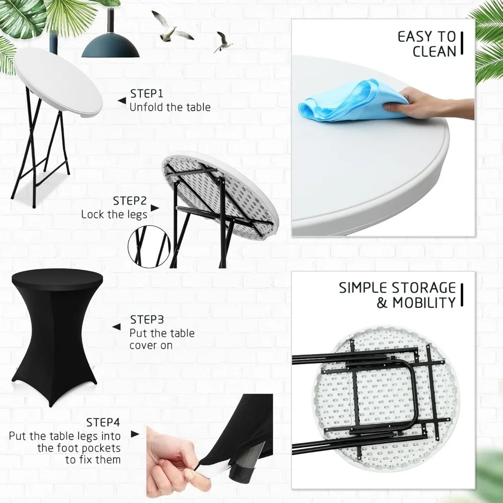 - Worry Free Set: bar height table and stretch cocktail table cover set is good option for indoor and outdoor gatherings such as parties, weddings, award ceremonies, also is ideal for family dining, and can be applied both indoors and outdoors; Our party table carries a ceremonial romance of its own and is a huge hit at social gatherings