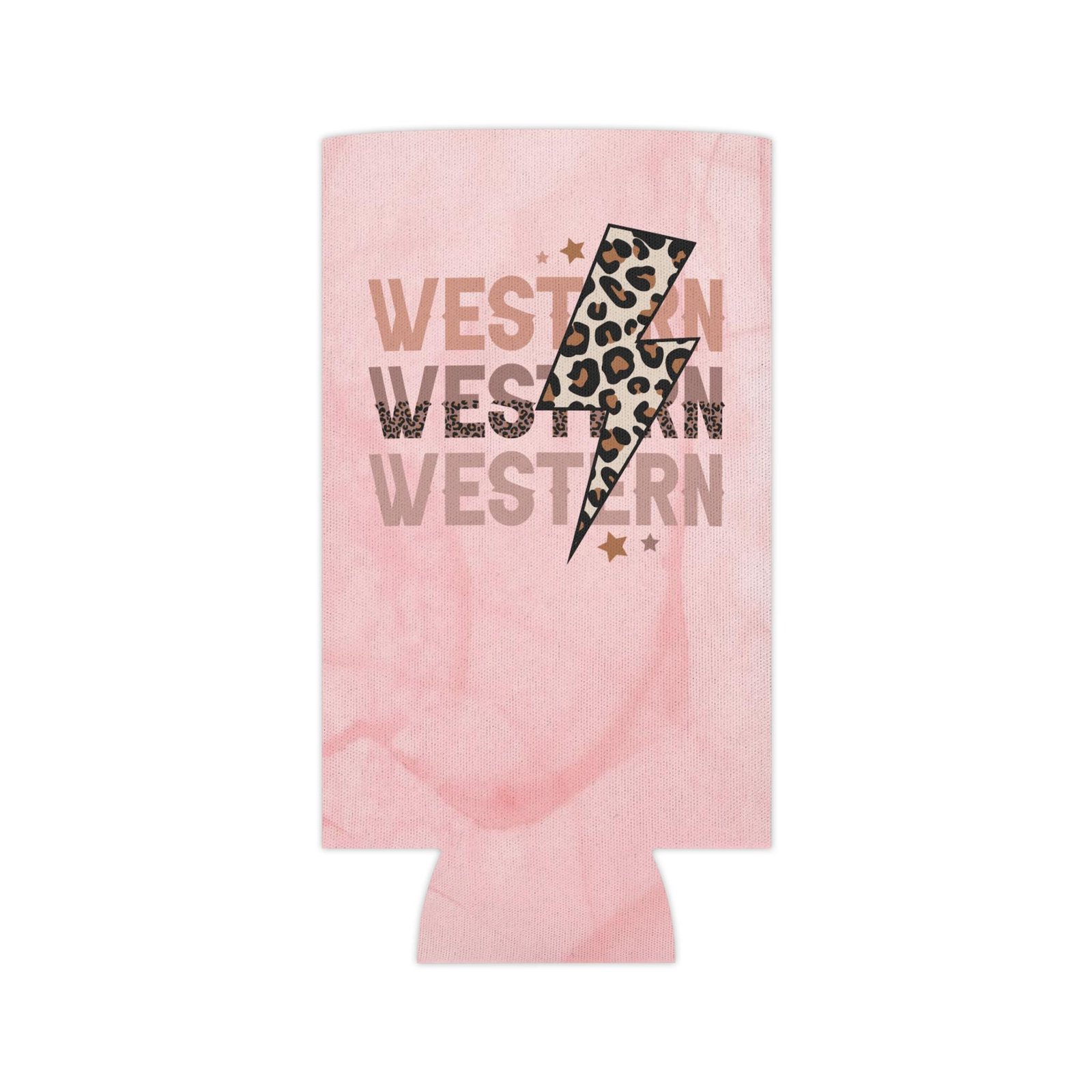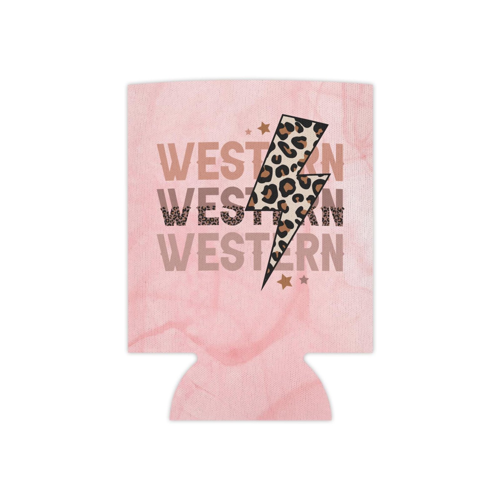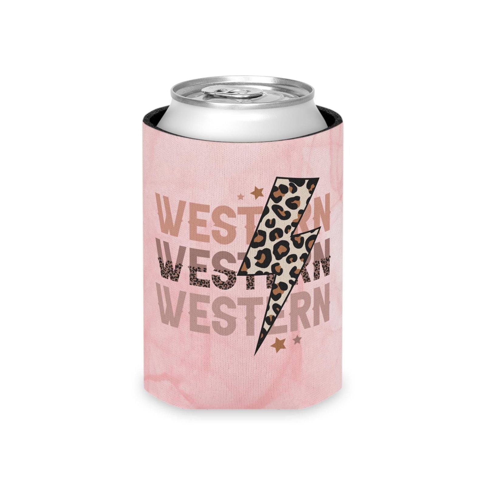 Western Trendy Cheetah Print Pink Water Color Can Cooler – Stylish Insulated Beverage Holder for Parties, BBQs, and Picnics, Gift Idea for