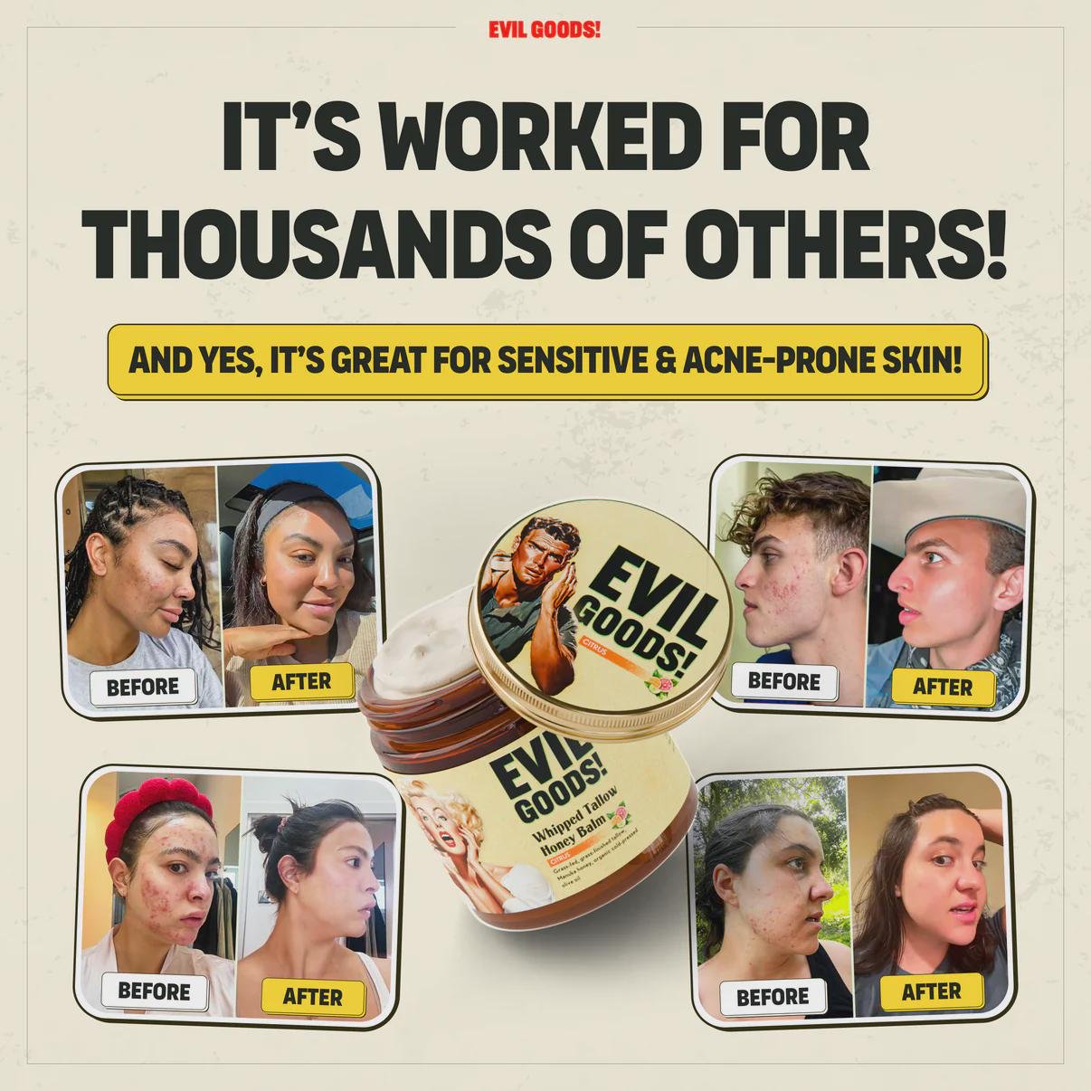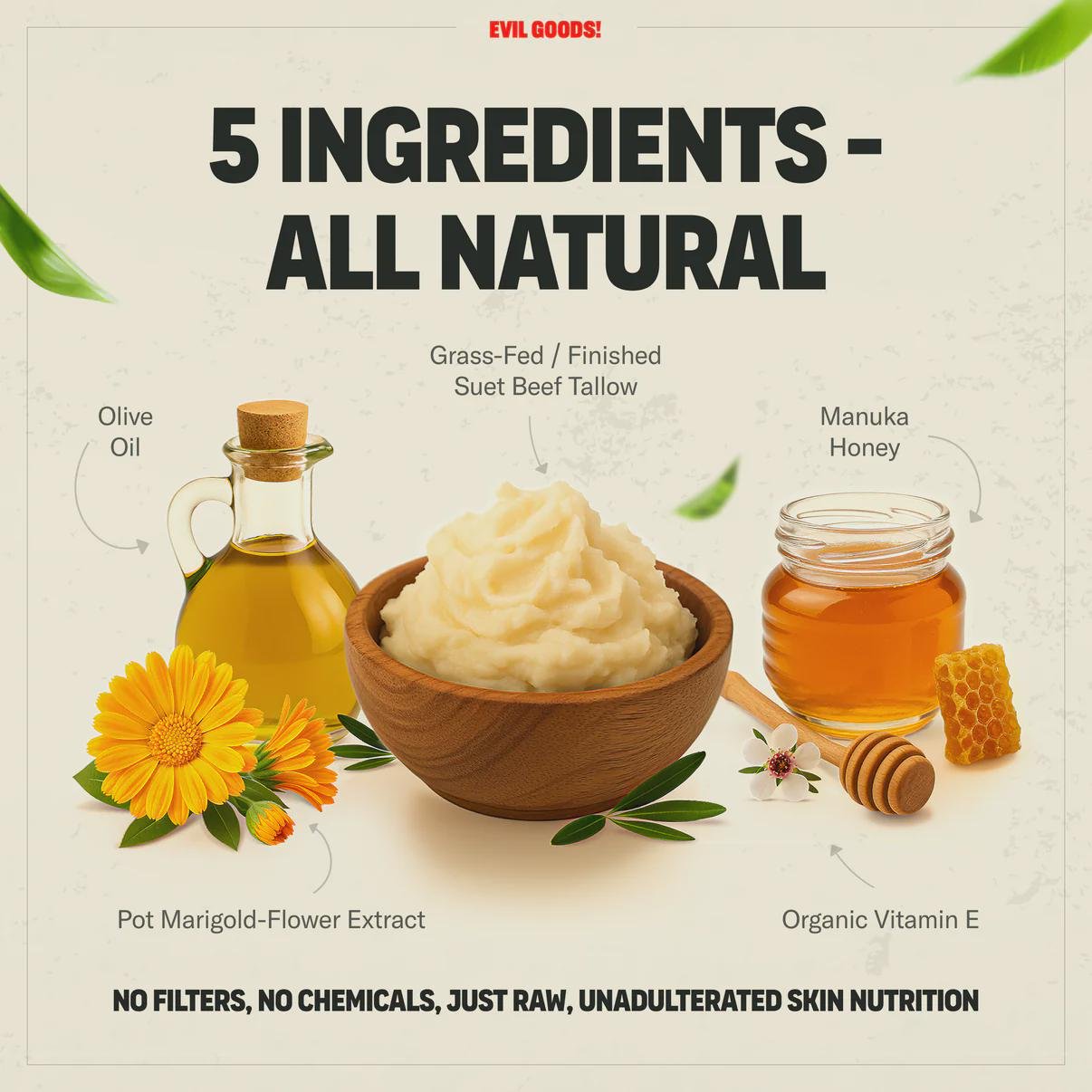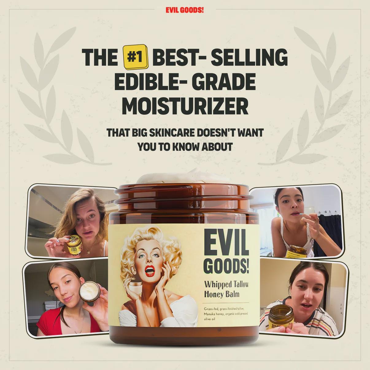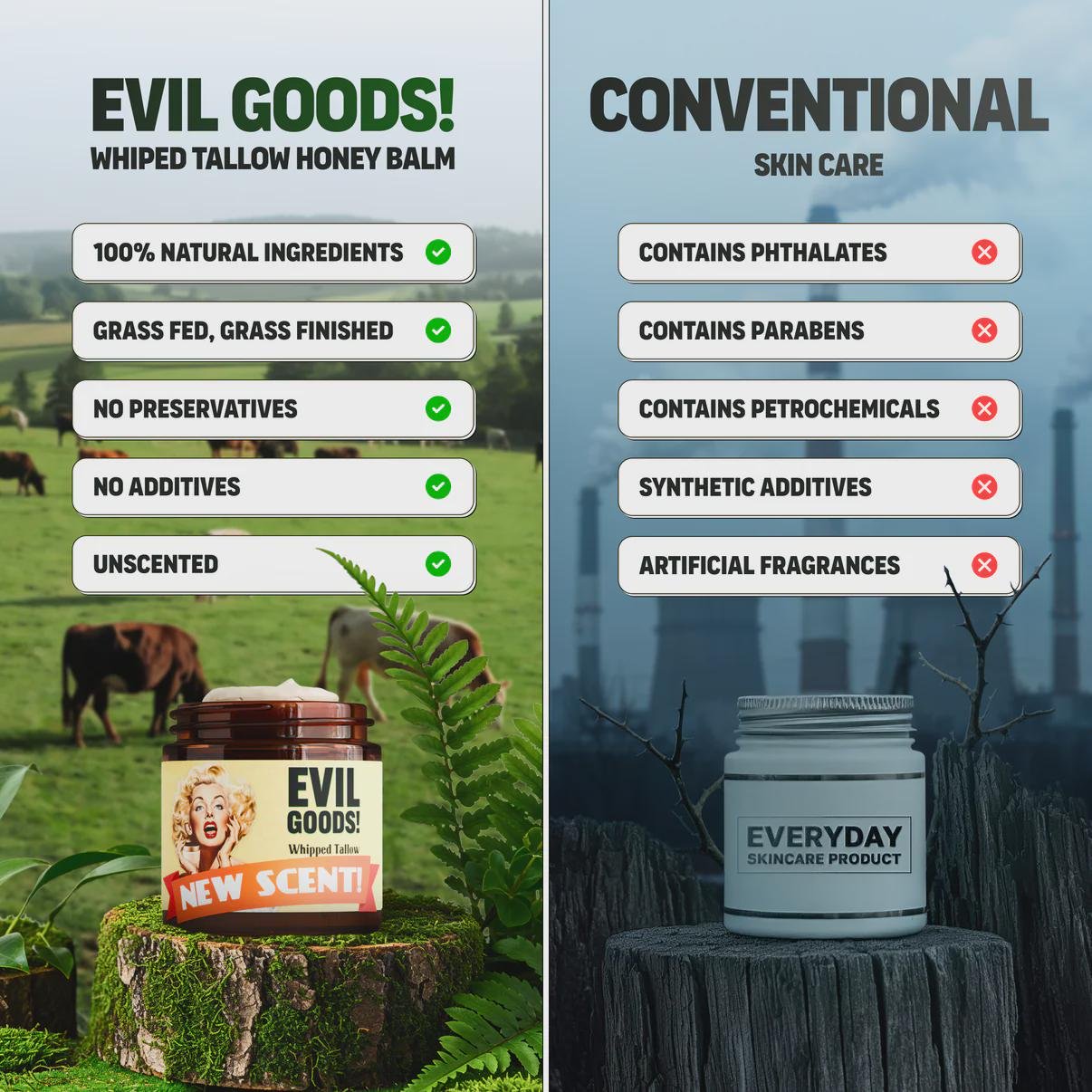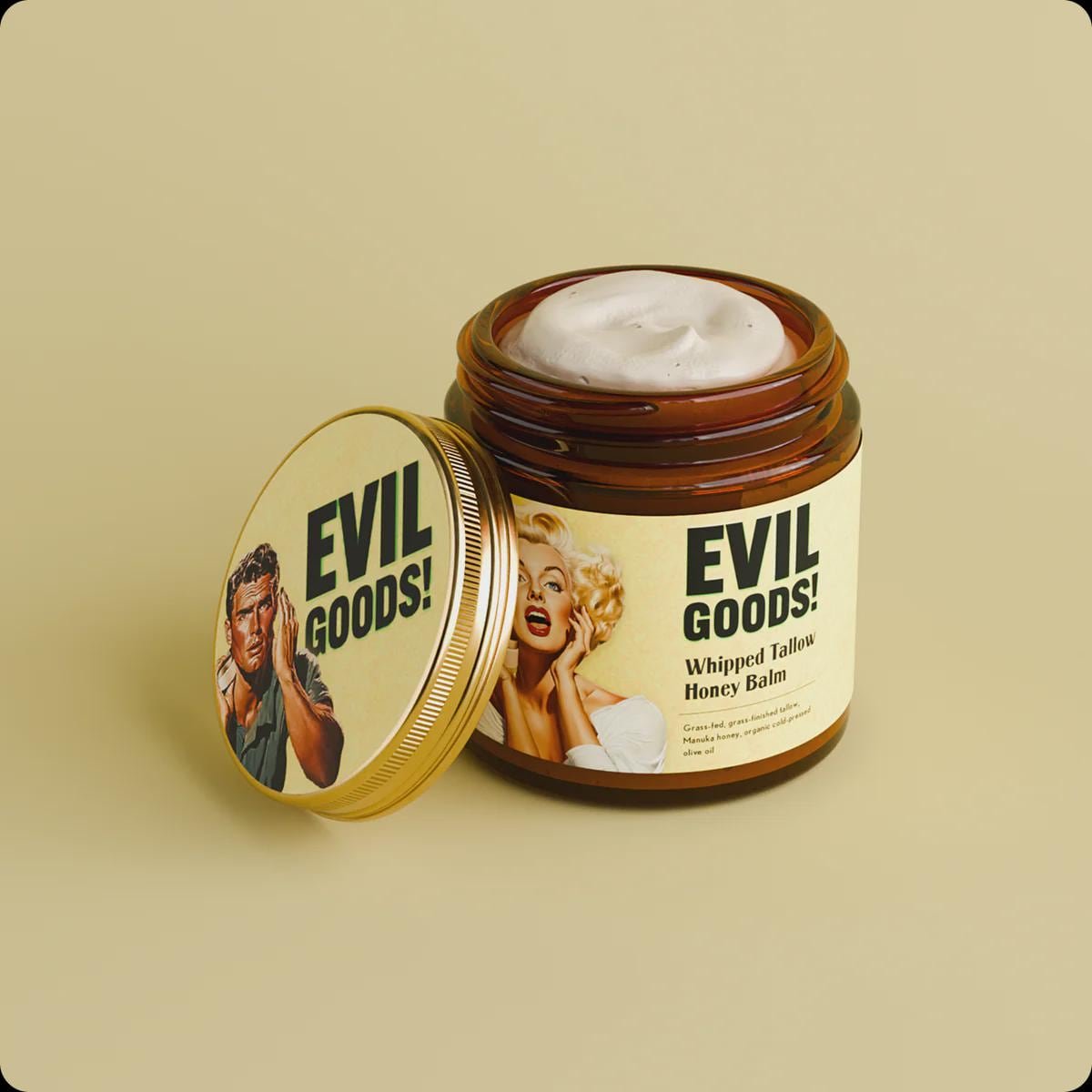 Whipped Organic Grass-Fed Beef Tallow Balm with Honey – Moisturizing Cream for Soft, Smooth Skin 4oz – Evil Goods