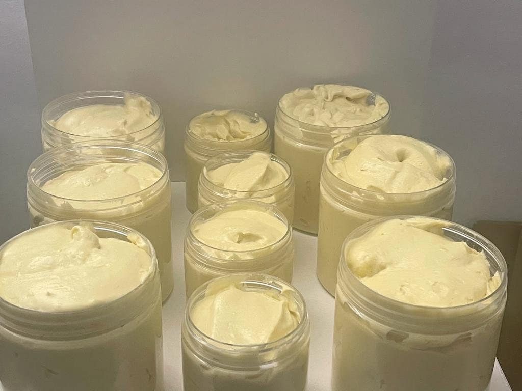 Our Whipped Shea Butter is a luxurious skincare product that will leave your skin feeling fresh, nourished, and radiant. Carefully crafted with love, our whipped formula ensures a light and fluffy texture that melts effortlessly into your skin, providing deep hydration and a healthy glow.