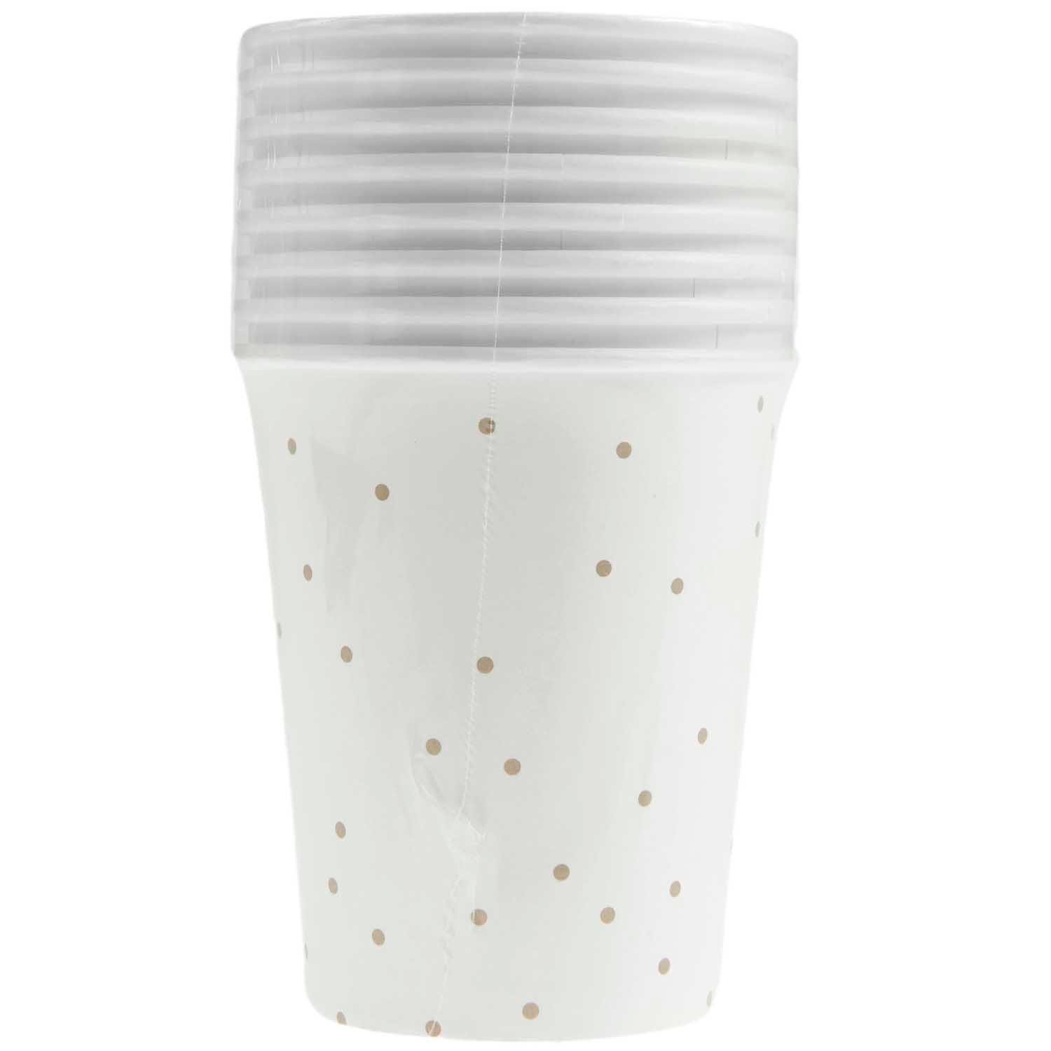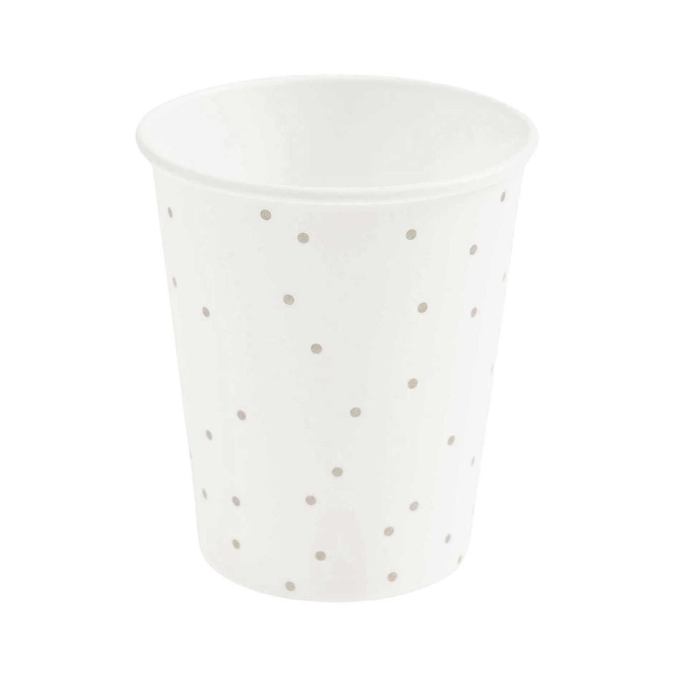 Our white and gold dots paper cups will bring a touch of elegance to your party table.