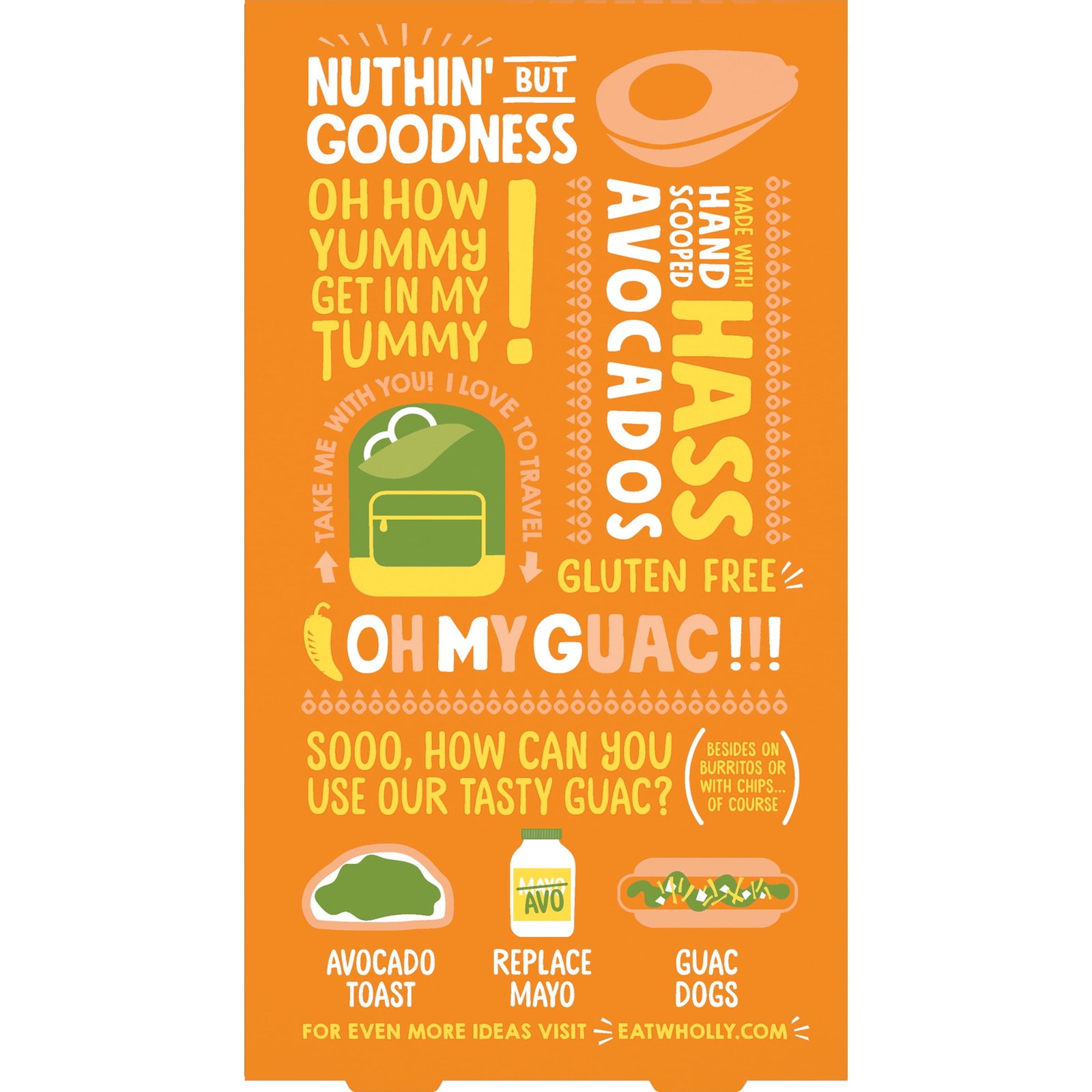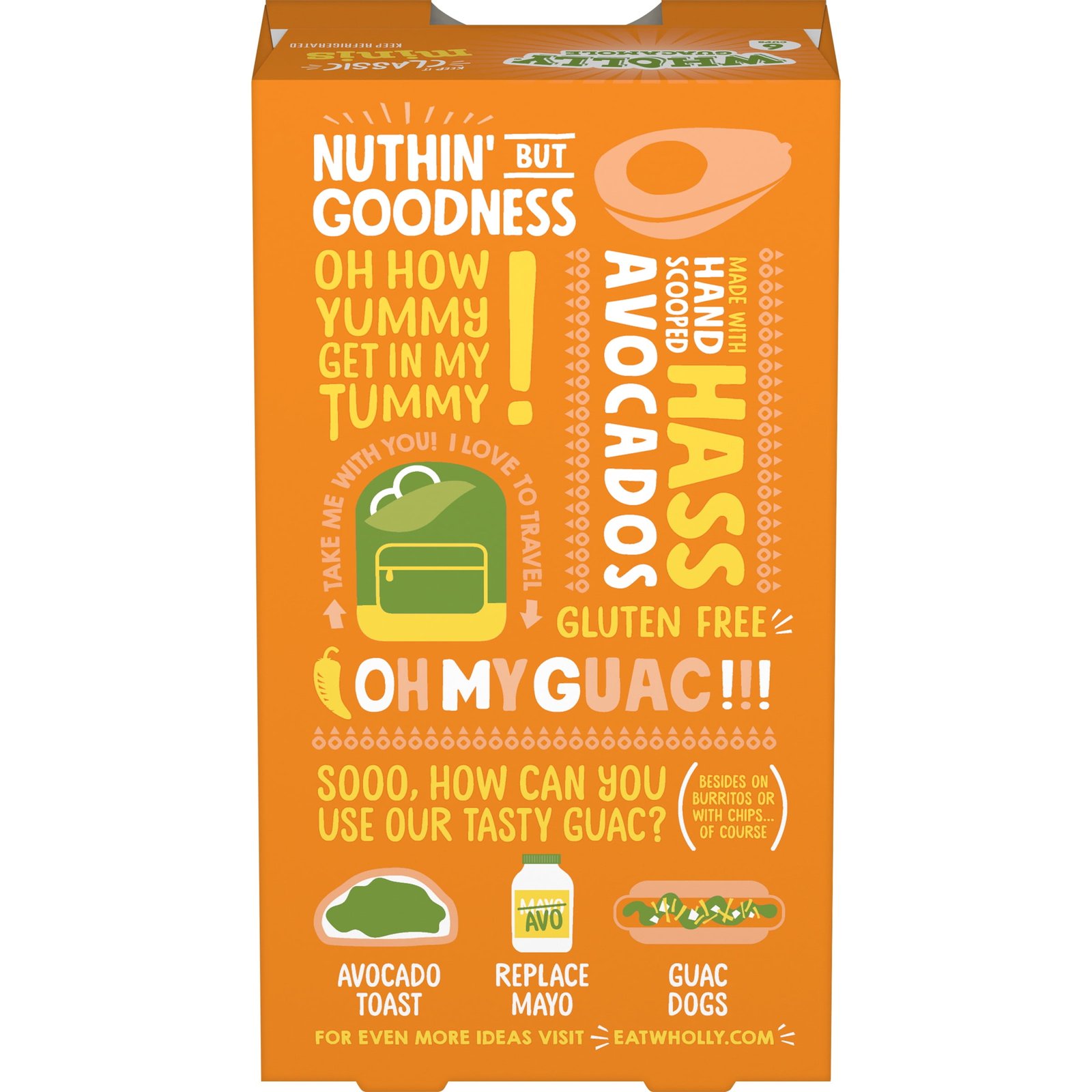 Perfection comes in small packages. For WHOLLY Guacamole Minis Paste, we took the hand scooped flavor of our Classic Guacamole and made it a lot more snackable. Hass Avocados, Jalapeño Peppers, Onion, and Garlic. Gluten-free. Includes six 12 oz plastic cups of WHOLLY GUACAMOLE Minis. Copyright MegaMex Foods, LLC