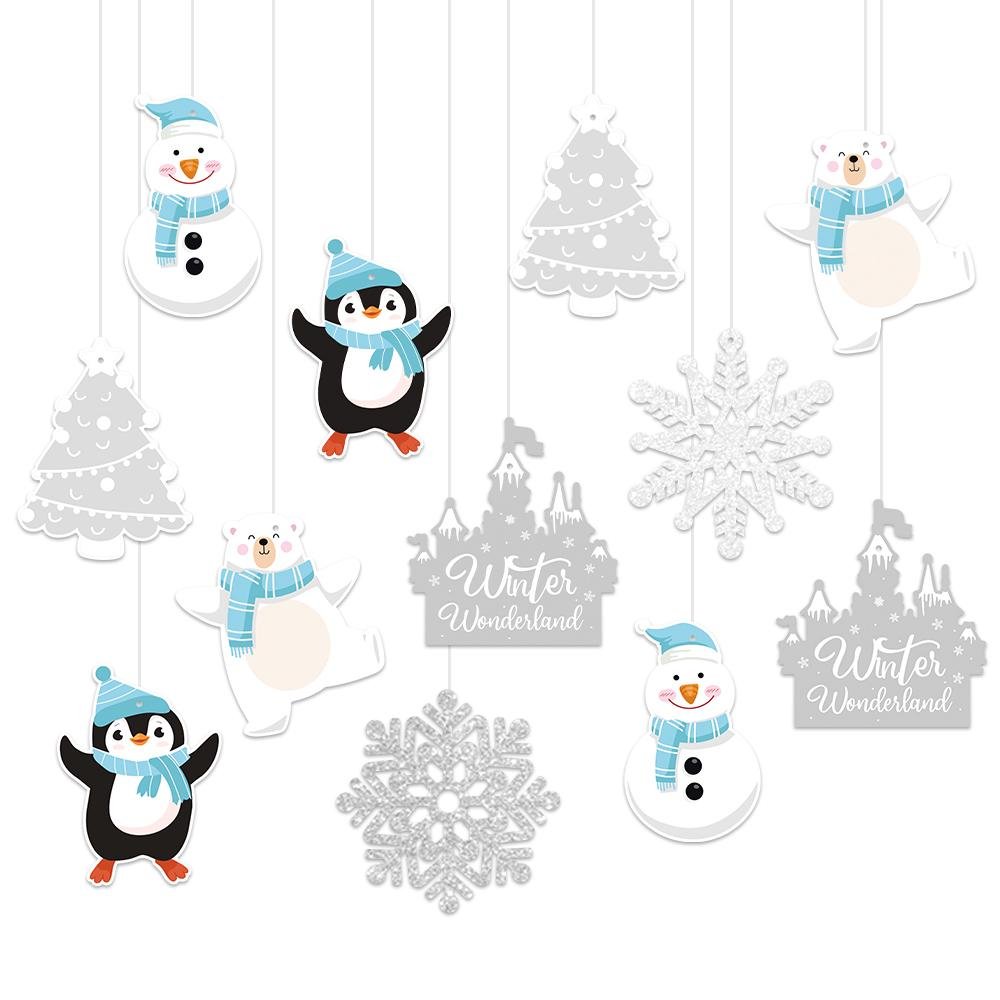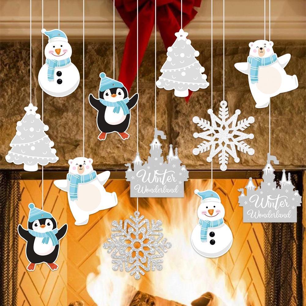 Winter Theme Christmas Hanging Decorations Blue Penguin Snowman Birthday Party Supplies Winter Holiday Birthday Favor