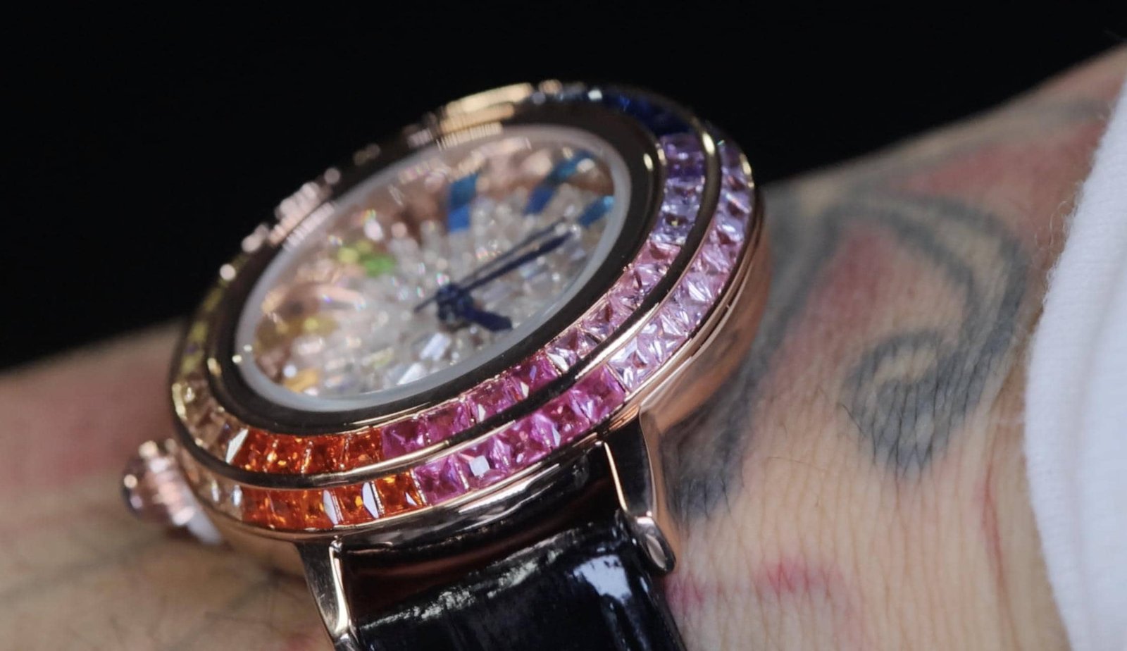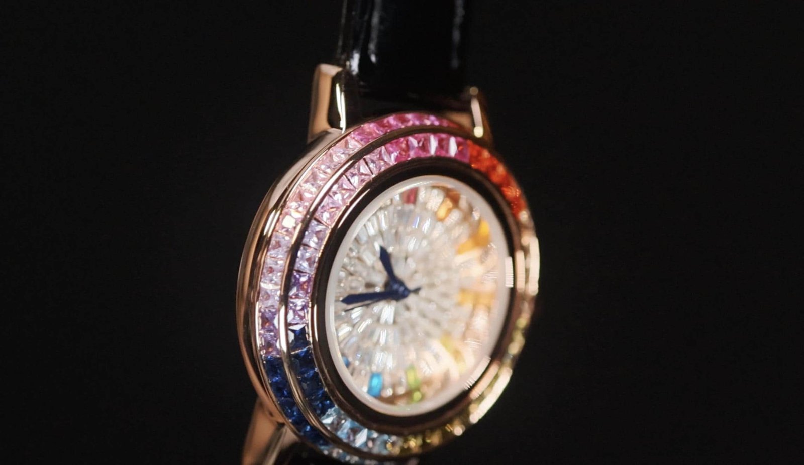 Womens Rainbow Diamond Watch | Rainbow Diamond Watch | Womens Rose Gold Watch | Womens Baguette Diamond Watch | Rose Gold Watch | Leather Strap Watch | Rainbow Bezel Watch