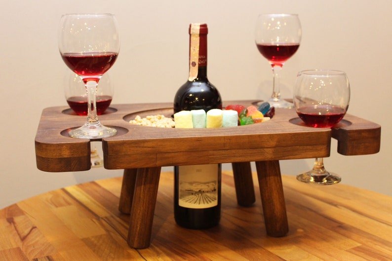 Wooden Wine and Snack Serving Tray, Breakfast Serving Table, Wine Serving Table, Assembly and Demounted Serving Plate