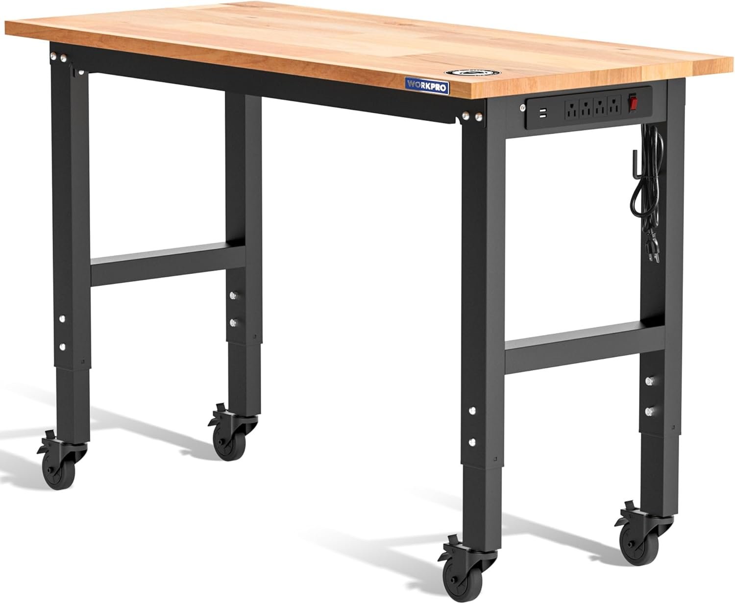 WORKPRO Adjustable Garage Workbench, 48"e;x22"e; Rubber Wood Top Heavy-Duty