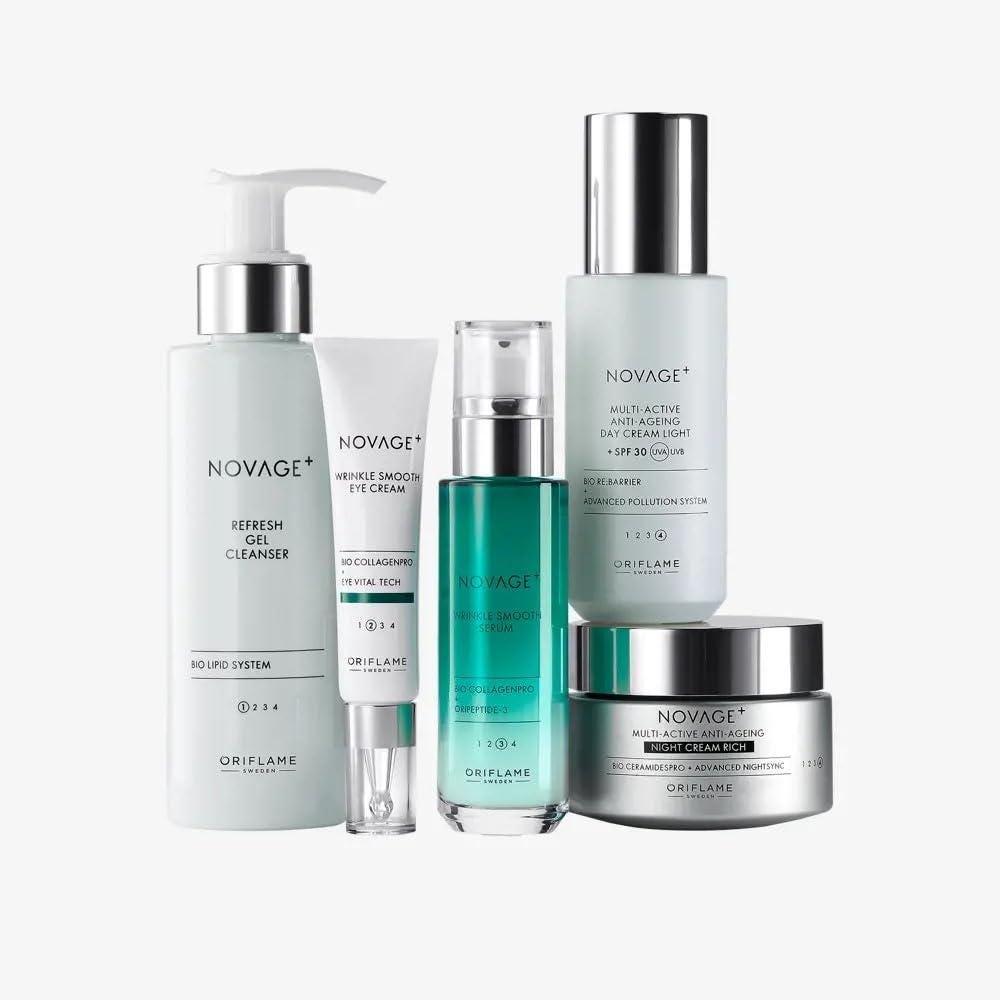 Wrinkle Smooth Skincare Set, Anti-Aging, Mixed Skin, 5-Piece Routine