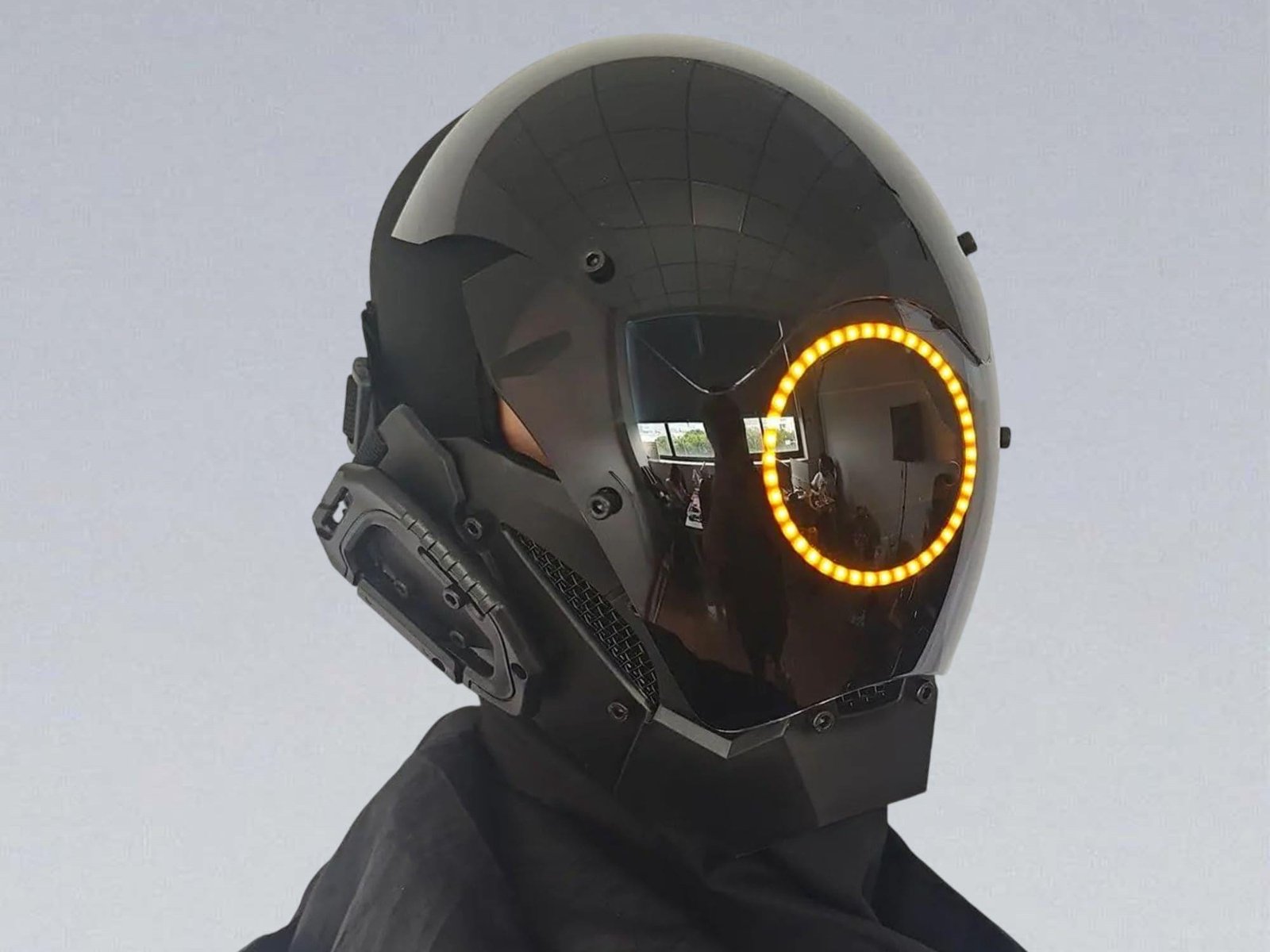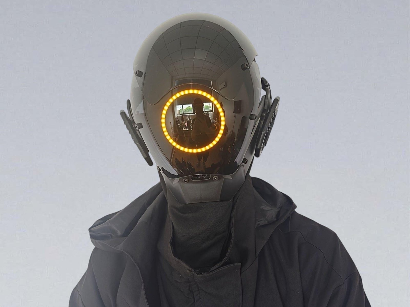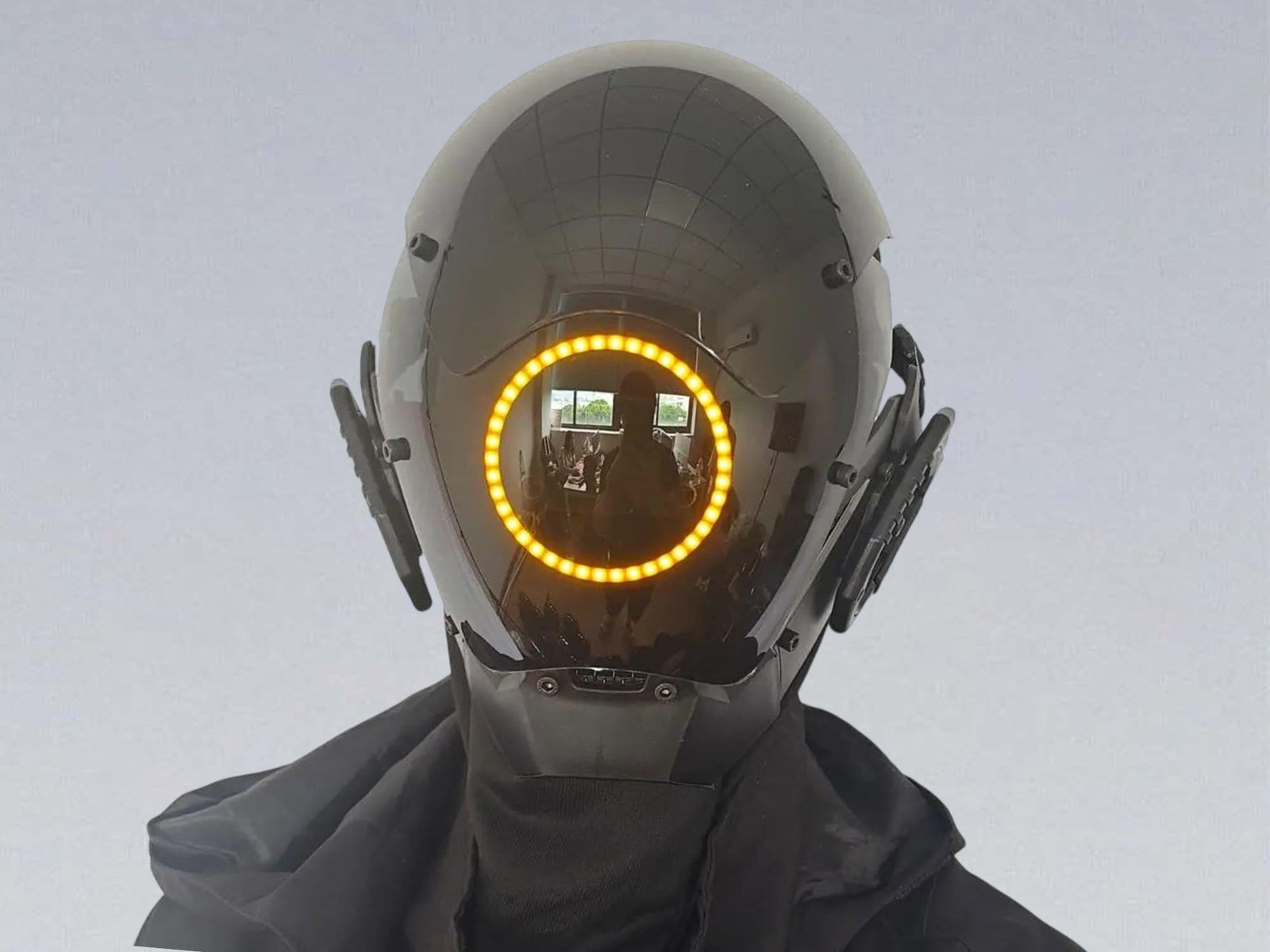Yellow LED TECHWEAR MASK – Futuristic Cyberpunk Mask with Mirrored Visor & Free Balaclava | Sci-Fi Cosplay Mask, Dystopian Costume Accessory