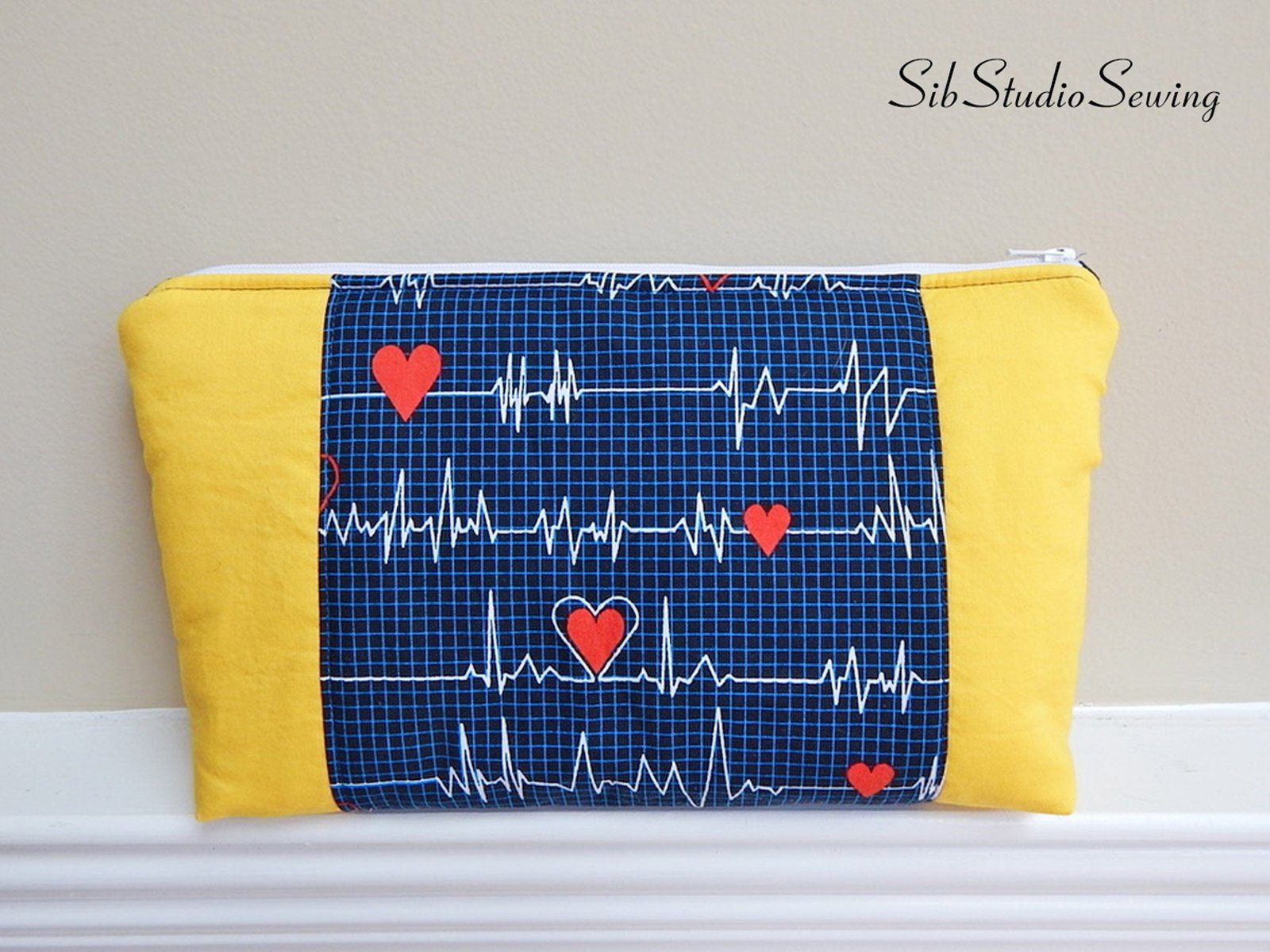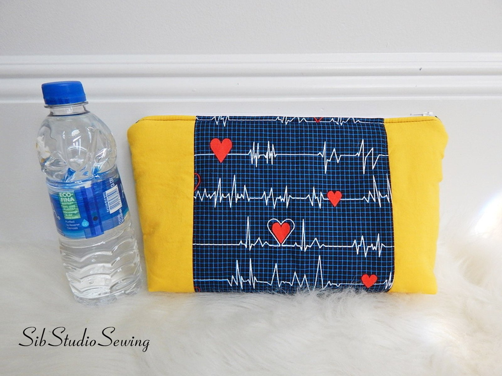 Yellow Stethoscope Bag: Vinyl Lined Nurse Cosmetic Bag, 10 x 6.5 x 2 inches, Zipper Closure, Extra Padded