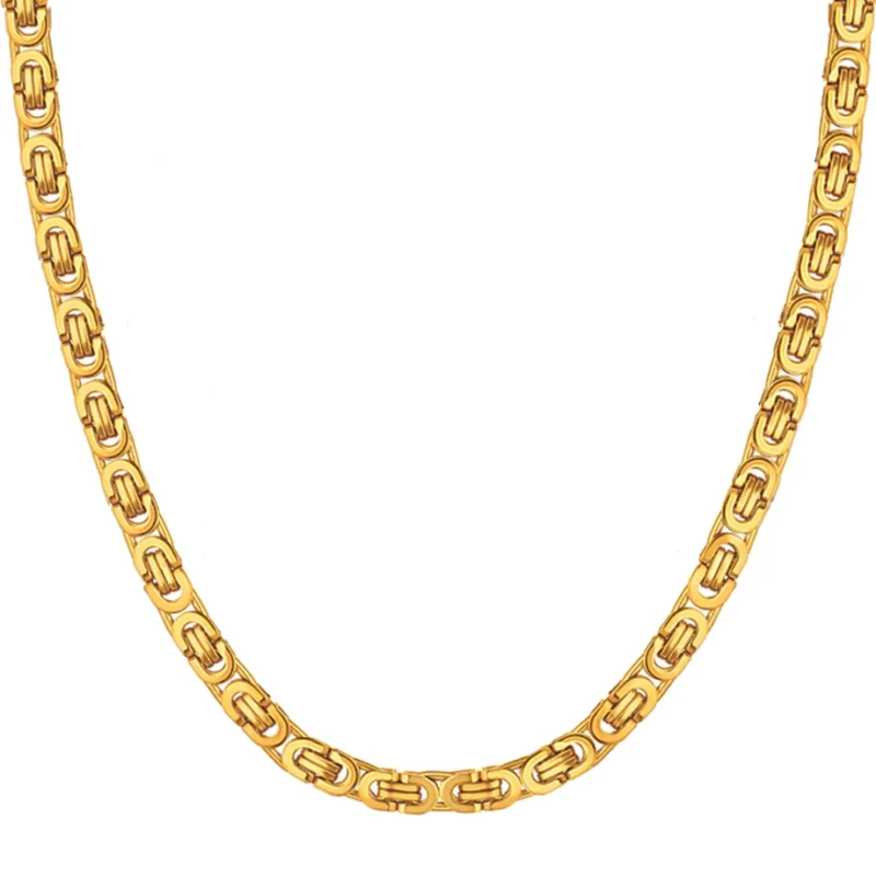Dropshipping Chunky Men Fashion Gold Color Necklace 6MM Stainless Steel Byzantine Chains Street Hip Hop Jewelry