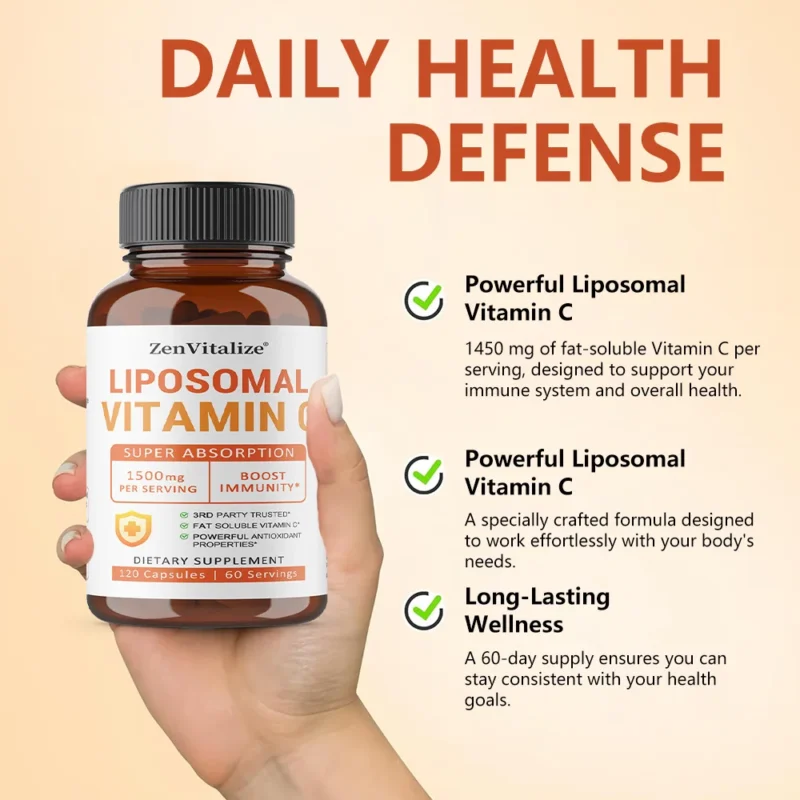 Liposomal Vitamin C 1400 Mg – Bone Density, Heart and Brain Health and Natural Calcium Supplement