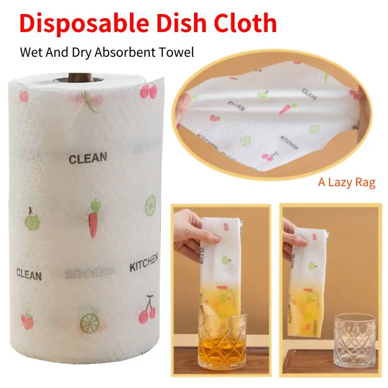 50/100/200pcs One-time Lazy Rag Multifunctional Kitchen Paper Wet And Dry Absorbent Water And Oil Cleans With One Wipe Towel Rag