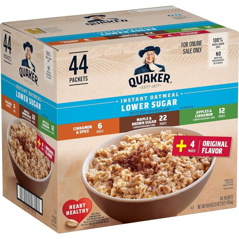$9.00 – $17.00Price range: $9.00 through $17.00Quaker Instant Oatmeal Lower Sugar, 4 Flavor Variety Pack 44 Count Pack of 1