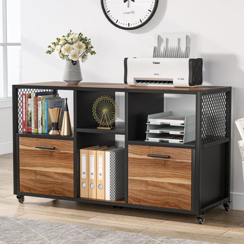 Tribesigns 2 Drawer Wood File Cabinets, Mobile Lateral Filing Cabinet for Letter A4 Size, Printer Stand with Shelves and Drawer